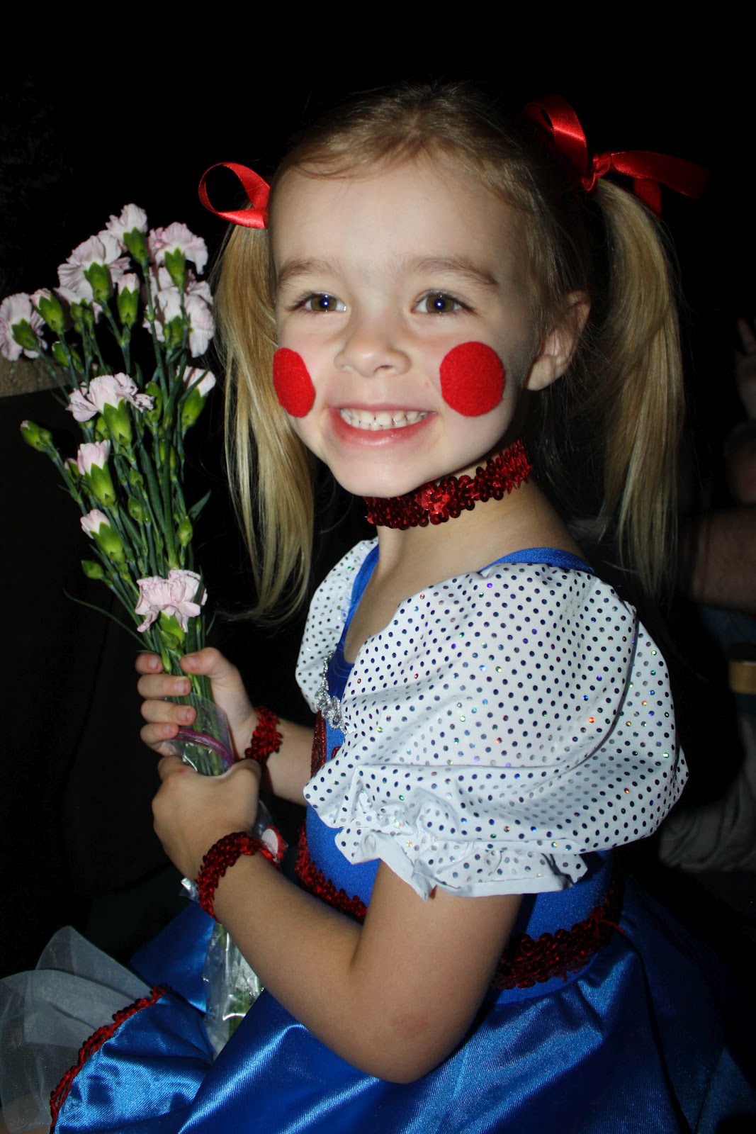 At the end of the recital all the dancers went up group by group and bowed for us. She was pretty excited to get to go up on the stage again and was so well behaved and gleefully clapped every time we did. (She's the second girl from her group from the left.)